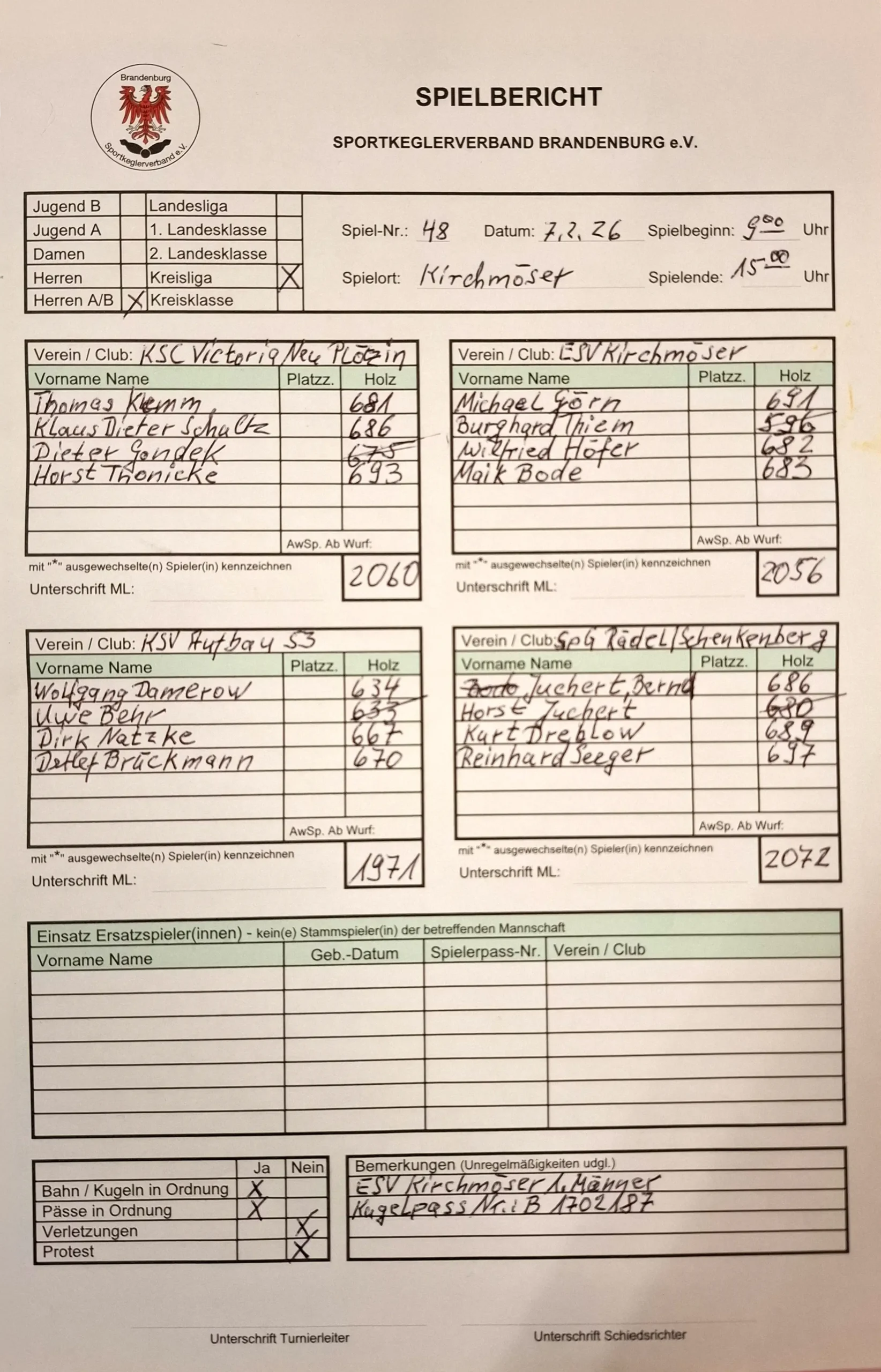 Beim Turnier T48, am 07. Februar 2026, in Kirchmöser sichert sich unsere Herren‑ABC‑Mannschaft einen starken 2. Platz. Den Tagessieg holte sich Rädel/Schenkenberg III, doch die Platzierung allein erzählt nicht die ganze Geschichte.